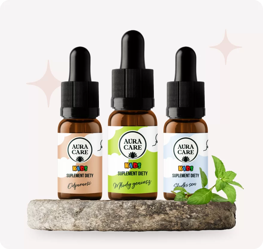 W produktach AuraCare zdecydowaliśmy się na suplementy diety w formie olejku z dołączoną pipetą z zakraplaczem.